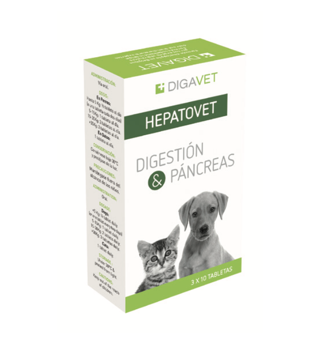 HEPATOVET, está especialmente indicado en casos de trastornos digestivos e insuficiencia pancreática exocrina (IPE), cuyos síntomas más